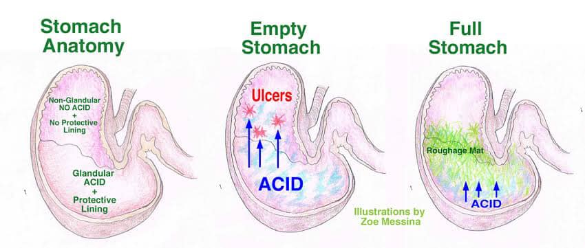 - Buffert en neutraliseert de zuurtegraad van de maag langdurend